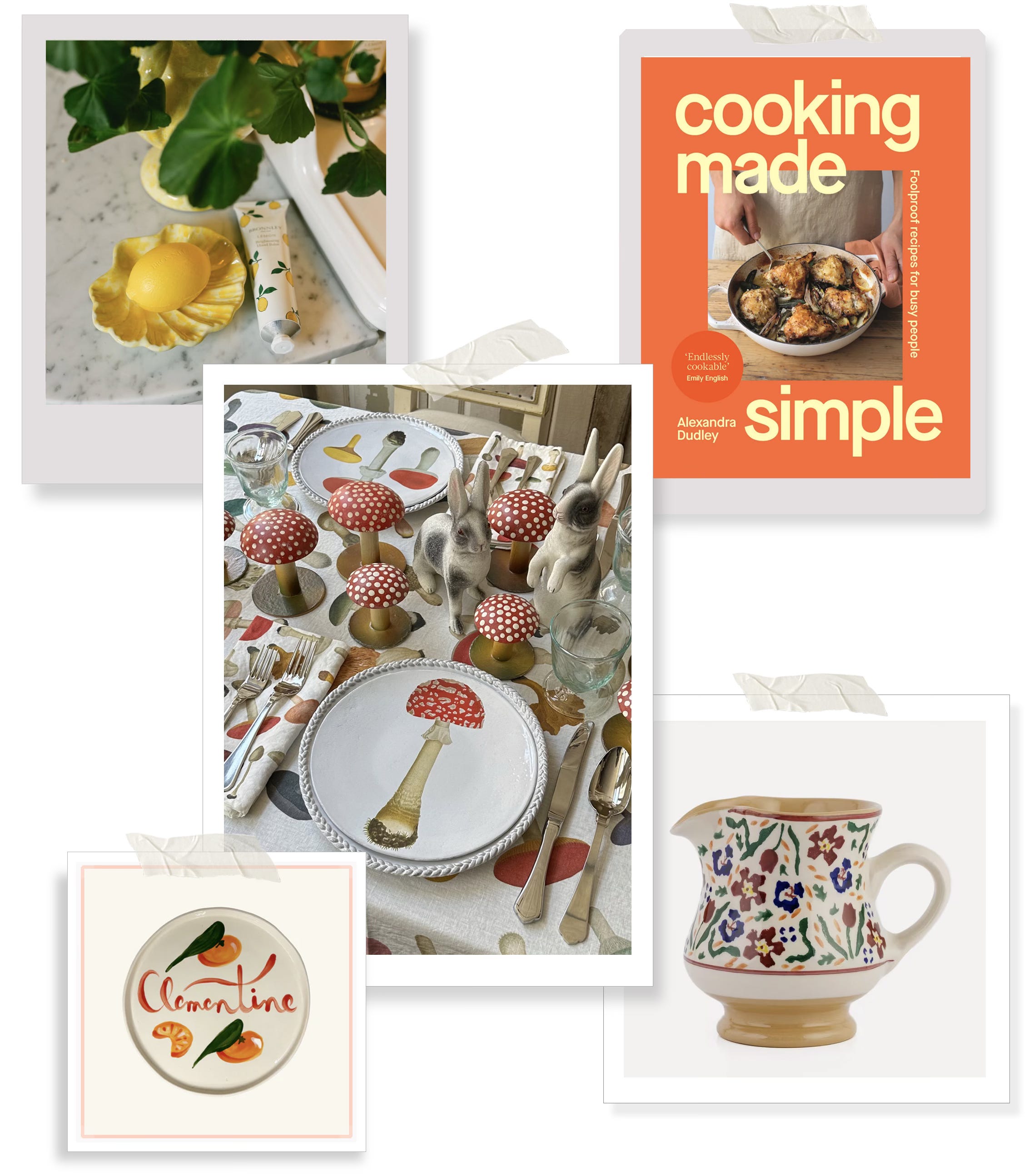 Brighten up your table with these toadstool linens – a collaboration between Summerhill & Bishop and John Derian. Napkins and tablecloths are printed with illustrations from Derian’s extensive archive of 18th and 19th century designs. The toadstool plates are from a selection by French brand Astier de Villatte x John Derian. The yellow ceramic shell is perfect for soap but olives would but look equally good, available from Lamp London. If you enjoy simple, straightforward recipes with fresh ingredients, Alexandra Dudley’s new book, Cooking Made Simple, offers a foolproof collection of dishes you’ll want to revisit time and again. You can find Alexandra’s Substack here.