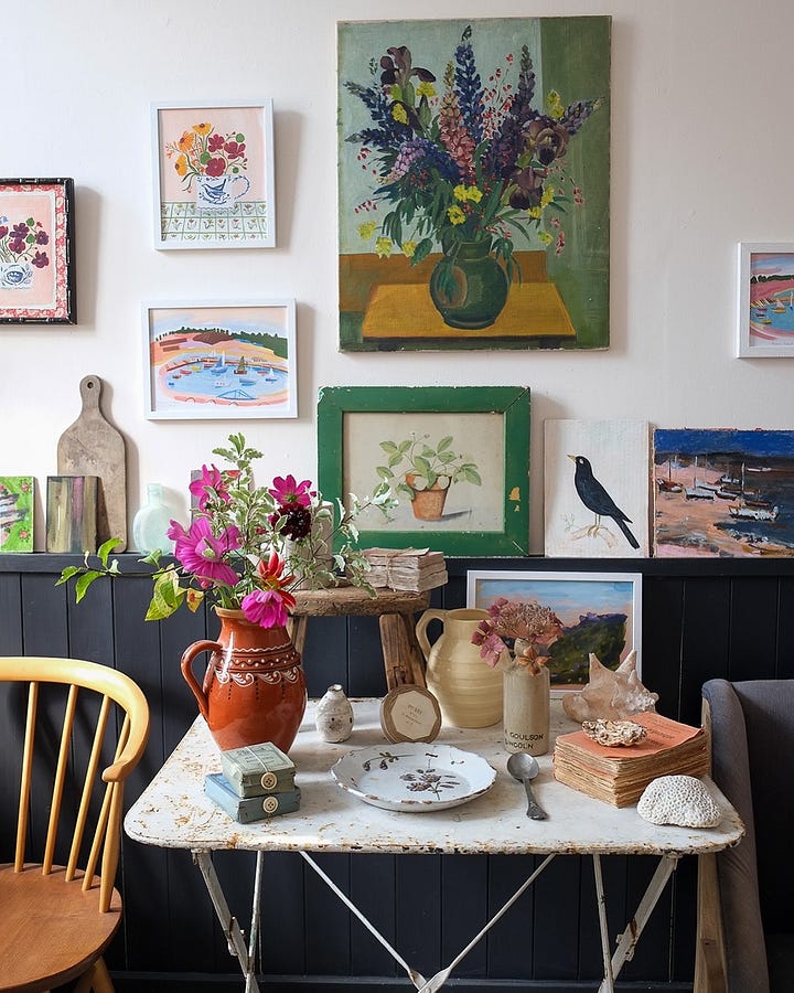 After art school, I worked as an exhibition designer at the National Gallery in London. Then a master’s at Central St. Martins in screen-based design, followed by almost fifteen years in corporate publishing and media. When my daughter was born, I decided to go freelance and designed homewares for companies such as Heals, John Lewis, TFL and Liberty. I had a cosy, light-filled studio in Clerkenwell and loved the variety of designing for such great clients, but when a random opportunity to open my own shop landed in my email inbox, I took a gamble and told myself, ‘Give it a year, two years tops.’ Mason & Painter Vintage opened at the end of 2013 with a selection of decorative antiques and homewares, alongside my own designs. I didn’t have a business plan, and I knew nothing about antiques, but I stayed on the same street in East London and had the shop for ten wonderful years, until 2023.