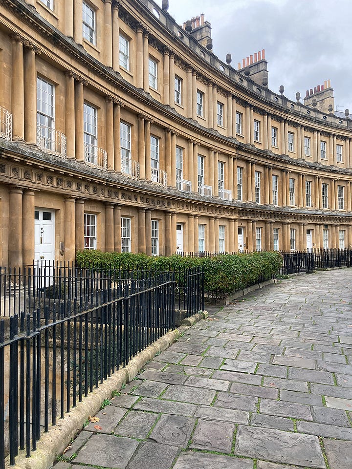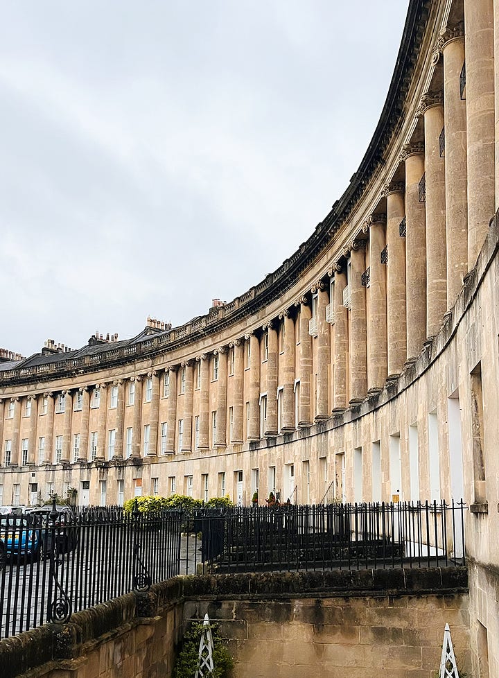 It was a flying visit, for a catch up with old friends, but last week’s stay in Bath was a lovely reminder that there’s so much to see in the historic spa town. We started with a walk through Royal Victoria Park to Royal Crescent. The Grade I listed, Georgian landmark is famous for its sweeping crescent of 30 Palladian-style terrace houses. Designed by John Wood the Younger and built between 1767 and 1775 the creamy stone facades, pictured below, are now home to No1 Royal Crescent Museum, a five-star hotel and spa as well as private homes.