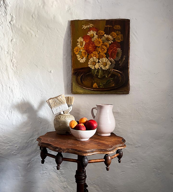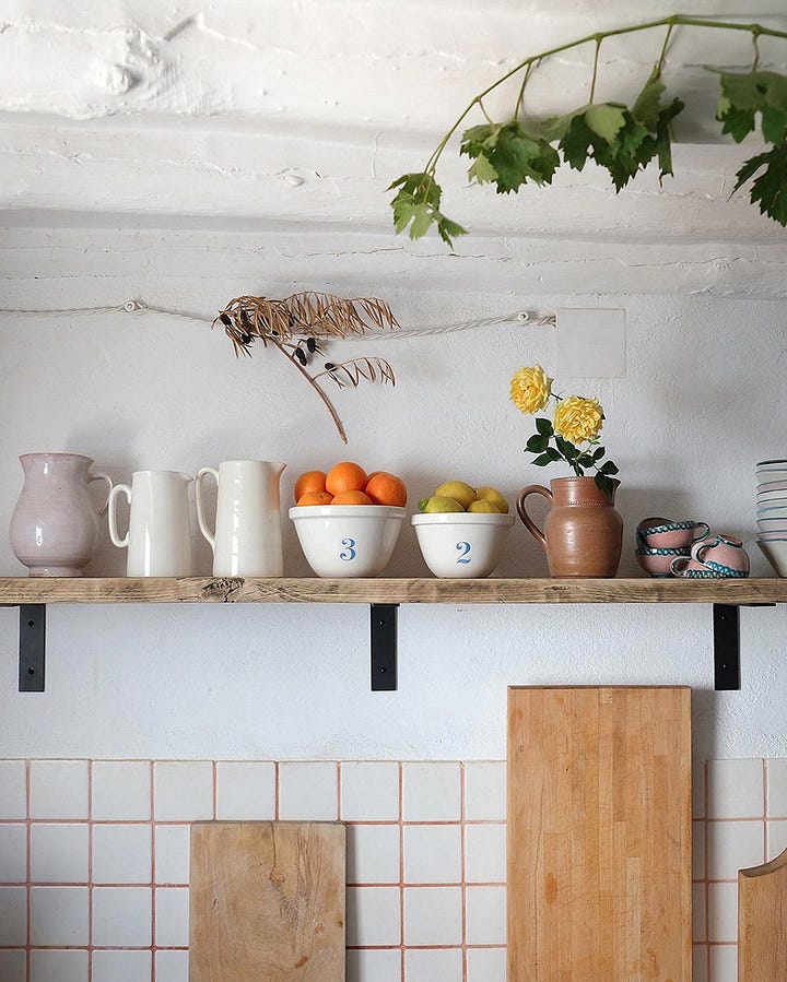 It took a year and a half to navigate the legal process and complete the paperwork (this was before Brexit). And almost two decades of hard work to transform the house into a comfortable, practical, inviting and joyful home. The first thing we did was remove the plastic, mock-wood panels from the downstairs rooms and lay new floor tiles. I was eight months pregnant at the time but I was determined to get as much work done before that first winter. We painted the downstairs walls with white lime wash, a method traditionally used for old houses in this area, known as cal in Spanish. This allows the walls to breathe and it transformed the kitchen, living room, and downstairs bedroom from a collection of dingy rooms to a light-filled space.